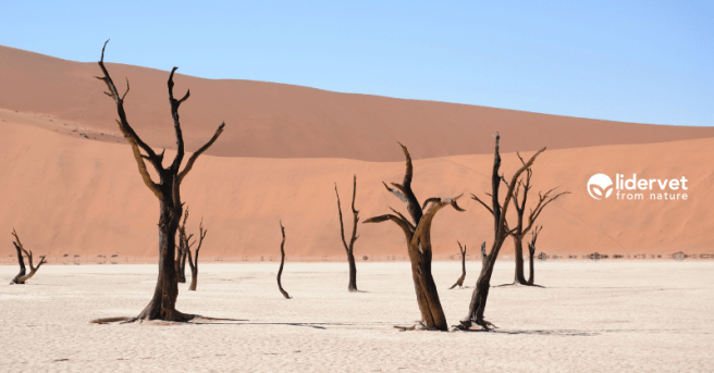 Un lugar asombroso que se encuentra en el desierto de Namib, rodeado de algunas de las dunas más altas del planeta. Hace mucho tiempo, las lluvias crearon un lago que hizo posible que creciera la vegetación. Con el tiempo, el clima cambió y se volvió extremadamente seco y caluroso provocando que el lago se secara totalmente. Después de más de 900 años todavía se conservan los esqueletos de esos árboles ya que, debido a las condiciones meteorológicas, en lugar de descomponerse se petrificaron.