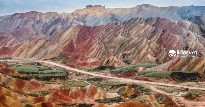 Este parque Geológico, situado en las montañas de Qilian es conocido por sus coloridas formaciones rocosas. Su pintoresco paisaje es el resultado de lo depósitos de rocas de arena y otros materiales que se produjeron hace más de 24 millones de años. El viento, la lluvia y el tiempo han esculpido estas montañas dando formas peculiares como torres, columnas o barrancos de diferentes colores y tamaños.